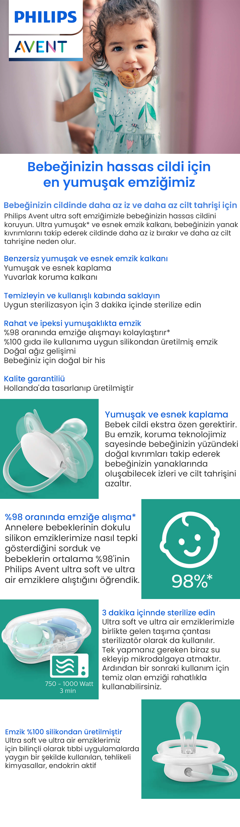 • Bebeğinizin hassas cildi için en yumuşak emzik